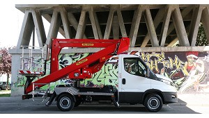 P 200 A-R - Palfinger Ibérica Maquinaria, S.L.: Plataforma aérea de doble articulación, ligera y compacta ideal para trabajar en espacios reducidos. Montada sobre camión de 3,5 t. El pantógrafo