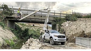 P 130 A - Palfinger Ibérica Maquinaria, S.L.: - Montada sobre pick-up todoterreno, alcanza con facilidad lugares difícilmente accesibles. - Conducción ágil incluso en terrenos accidentados. - Disponible sobre camión de 3,2 y 3,5 t. - La versión