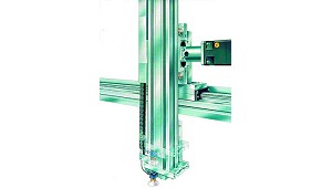 alojamiento del accionamiento, que contiene el reductor, el sistema lineal con recirculación y el motor. Este diseño permite el movimiento de cargas bajas a moderadas a velocidades de hasta 2 m/s y aceleraciones