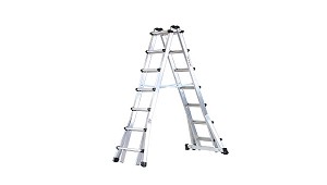 Escaleras de tijera telescópicas extralargas Escalera telescópica de aluminio extralarga para trabajar en tijera o en desnivel Svelt Bravíssima - Hispano Industrias Svelt, S.L.: Escalera telescópica compacta para trabajar en tijera