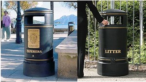hostelería. Fabricada en Durapol, un polietileno altamente resistente. Se suministra con: - Sistema de cierre con llave. - Cubo interior de acero galvanizado o de polietileno. - Bandas decorativas y leyendas en dorado