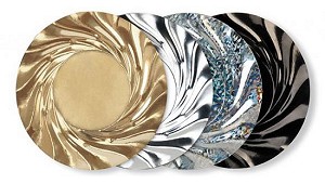 única de 35 cm, es ideal para presentaciones de pastelería, hostelería y catering. Es muy resistente y elegante. Se fabrica en oro, plata, negro y holográfico. Paquete de 25 unidades. (Vajillas desechables / platos desechables)