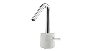 maneta. Presión mínima de uso: 0,5 bar. Cartucho sellado con discos cerámicos de diámetro 25 mm. Con aireador oculto. Suministrado con latiguillos flexibles de 3/8 y longitud de 40 cm. La Colección