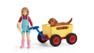 ocasión. Con la carretilla de Schleich farm world, Sarah y su cachorro Bello viven fantásticas aventuras. Pasan por un campo en el que crecen flores de colores, atraviesan un campo
