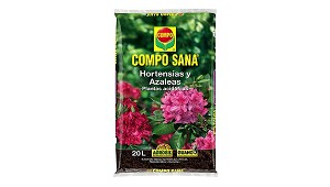 planta con Compo Sana Hortensias y Azaleas no precisa de abono en las siguientes 4 semanas. Turba negra de la mejor calidad, con el pH adecuado para plantas acidofilas. Producido