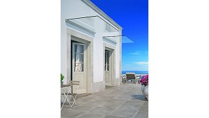 aluminio en diferentes acabados (Anodizado plata mate, blanco y efecto inox), juntas y accesorios de seguridad e incluye tapas terminales de acabado sin tornillos a la vista. Proveedor : Logli Massimo (Marquesinas)