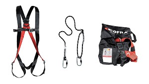 trabajo en altura El kit consta de un arnés y un cordón de sujeción y posicionamiento ajustable equipado con conectores Cofra Fall Protection Kit Velasco - Cofra, S.R.L.: Kit diseñado para