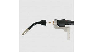 delgada y un paquete de mangueras especialmente flexible facilita unas condiciones de trabajo sin fatiga, incluso durante largos periodos de tiempo y con soldaduras fuera de posición. (Robots para soldadura)