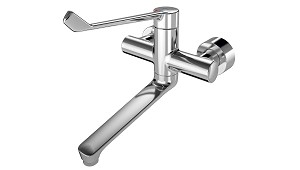 autodrenante con regulador de chorro laminar. Con conexiones ajustables y bloqueables con filtros, completamente ocultos gracias a rosetas atornillables con ajuste de profundidad. Longitud de 285 mm. (Otras griferías para baños)