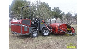 Cepillo de plástico intercambiable en función de tipo de fruto a recolectar. - Velocidad del cepillo barredor regulable. - La dureza del cepillo se adecua en función del producto. - Máquina articulada para