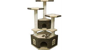 refugio con 3 alturas o plataformas, tiene gran estabilidad y se limpian fácilmente con un cepillo o un aspirador. Fabricado en moqueta rugosa y postes de sisal. (Juguetes para perros)