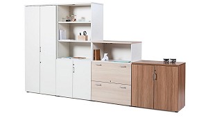 oficina en acabados melamina, disponible en varias medidas con opción de crecimiento horizontal y vertical. Dividen, clasifican Cada vez más, se utilizan armarios como elementos de separación de ambientes de trabajo