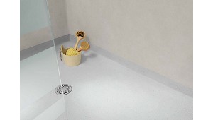 orgánico AQUAtec, resistente a la humedad, y un perfil de lengüeta y ranura de cierre automático, en combinación con un sello de borde que la repele. (Pavimentos y revestimientos laminados)