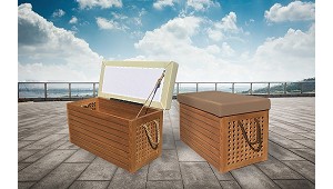 tela disponible en color tabaco o miel COD: 60.143 - Atep Italia, S.r.l.: Baúl marino en teca con tapa de tela. Disponible en dos colores: tabaco o miel. Dimensión: 76 cm x 36 cm x h 44 cm (Cofres