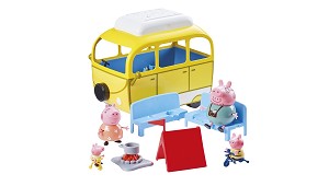 George. Incluye 4 figuras articuladas (Peppa Pig, George Pig, Mamá Pig y Papá Pig) asientos extraíbles, tienda de campaña, fogata y 2 bicis (Juguetes de iniciación e imitación para bebés)