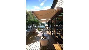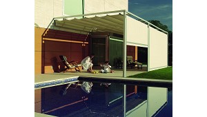 Toldos de jardín autoportantes Ideal para complementar lateralmente instalaciones de toldos con estructura Elit Llaza Elit Vertical - Llaza World, S.A.: Beneficios para el usuario final: - Guía de 120 mm que evita