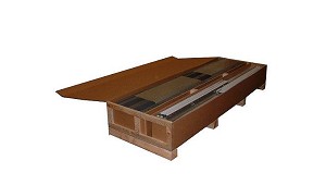 Tecnicarton, S.L.: Embalaje mixto de cartón y madera totalmente personalizable según las necesidades del cliente (apertura frontal/lateral, asas, cerrojos) para facilitar el transporte y la logística de productos industriales muy alargados
