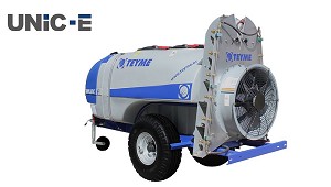 UNIC-E - Teyme Tecnología - Agrícola, S.L.U.: Características: - Equipo arrastrado estrecho. - Ventiladores desde ø610 mm hasta ø820 mm. - Caudales hasta 53.500m³/h. - Depósitos de 800l y 1000l. Equipamiento: - Bastidor: chasis reforzado