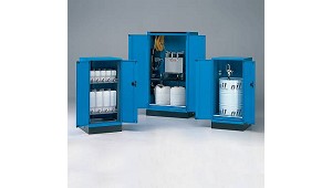 alicada electrostáticamente y secado en túnel a 200 °C tras un lavado de fosfatación y desengrasado. Los estantes perforados permiten el trasvase de posible fugas de producto hacia el cubeto