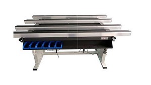 Bancos de rodillos Capacidad de carga por metro lineal de 6 kg Comall Quota VX 400 - Comall International, S.r.l.: Banco de rodillos con posicionamiento automático del tope. Accesorios de serie