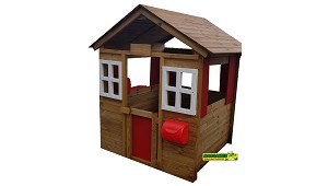 buzón con apertura superior, 1 teléfono que suena como los de verdad y 1 maceta para que los niños puedan plantar plantas. Medidas totales de la casita: 194 cm alto