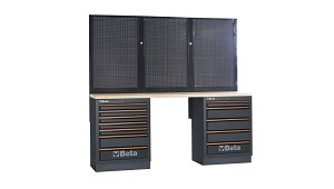 Cajonera fija con 7 cajones (C45PRO 2.0 M7). - Cajonera fija con 5 cajones (C45PRO 2.0 M5). - 3 paneles perforados portaherramientas (C45PRO 2.0 PF). - 2 soportes de pared tipo ancho (C45PRO
