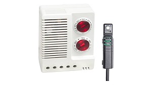 electrónicos con sensor externo Controlan la humedad relativa en el interior de la envolvente Stego Serie ETF 012 - Stegotronic, S.A.: Entre sus características técnicas destacan: - Temperatura y humedad ajustables - Amplia