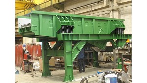 Accionado mediante motovibradores con masas excéntricas regulables para variar su oscilación. La velocidad puede variarse mediante variadores electrónicos. Equipado, en caso necesario, de piezas antidesgaste y antiadherentes. (Alimentadores para áridos)