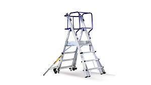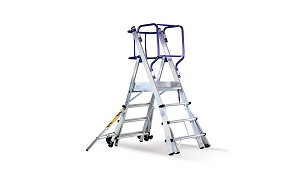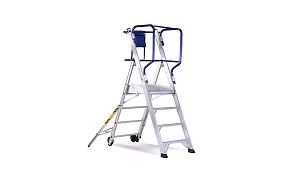 Escaleras móviles Diseñada con plataforma y guardacuerpos 360 grados Svelt Fly - Hispano Industrias Svelt, S.L.: Escalera móvil con plataforma, guardacuerpos 360º y barandillas plegables EN131-7. Características técnicas: - Fabricada en aluminio