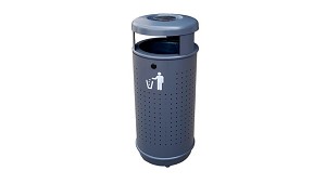 burlet, apta para interior y exterior. Se fabrica con materiales y criterios antivandálicos. Disponible en inoxidable. Personalizable mediante vinilos. Opcional: - Pie para fijar en el suelo; cenicero. (Papeleras para exteriores)
