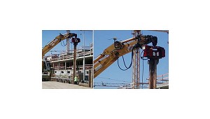 hinca en gran diversidad de terrenos y emplazamientos - Ischebeck Ibérica, S.L.: Los vibradores colgados de grúa permiten la hinca de elementos de gran longitud en lugares de difícil accesibilidad. - Este