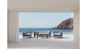 estilo. Inspirada en el minimalismo y la funcionalidad, la colección Hana ofrece muebles que se integran perfectamente en entornos modernos, resaltando por su diseño limpio y contemporáneo. (Mobiliario para jardín)
