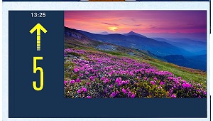 Logo de la empresa. - Textos personalizables en pantalla. - Reproducción de fotos. - Gong de próximo sentido. - Posibilidad de montaje horizontal o vertical. - Modo bajo consumo. - Los ajustes de la pantalla se realizan