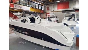 pica. Capacidad para 7 personas. Equipamiento estándar: - Volante con dirección completa. - Balcón de proa en inox. - Parabrisas en plexiglass. - 4 bitas en inox. - 3 ganchos de remolque. - Luces de navegación. - Cojines interior / exterior completos. - Bomba de sentina. - Cuadro de relojes con interruptores. - Puerta de cabina. - Escalera de baño. - Bomba de presión y ducha. - Depósito de agua 60 Its. - Mueble