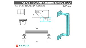 Asa tirador De aluminio Teyco Asa 533 - Industrias Teyco, S.L.: Asa tirador de fundición de aluminio para cierres embutidos. (Asas, pomos y tiradores para carpintería)