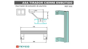 Asa tirador De extrusión Teyco Asa 532 - Industrias Teyco, S.L.: Asa tirador de extrusión de aluminio ref: 532 para cierres embutidos (Asas, pomos y tiradores para carpintería)