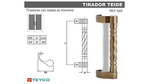 Tirador Para carpintería de aluminio Teyco Teide 525 - Industrias Teyco, S.L.: Tirador recto con codos de aluminio para puertas de carpintería de aluminio. (Asas, pomos y tiradores para carpintería)