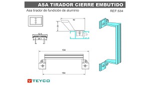 Asa tirador Fundición de aluminio Teyco Asa 534 - Industrias Teyco, S.L.: Asa tirador de fundición de aluminio para cierres embutidos (Asas, pomos y tiradores para carpintería)