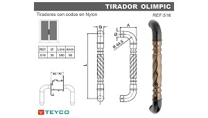 Tirador de aluminio De nylon Teyco Olimpic 516 - Industrias Teyco, S.L.: Tirador de aluminio con codos de nylon para puertas de carpintería de aluminio. (Asas, pomos y tiradores para carpintería)