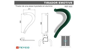 Tirador De una pieza Teyco Emotive 522 - Industrias Teyco, S.L.: Tirador de una pieza en aluminio inyectado para puertas de carpinterías de aluminio. (Asas, pomos y tiradores para carpintería)