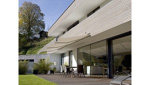 Toldos de brazo invisible Hecho de acero inoxidable Markilux ES-1 - Manufacturas Cortinsa, S.L.: El toldo ES-1 cuenta con un motor de serie que puede ser accionado a distancia