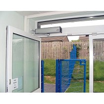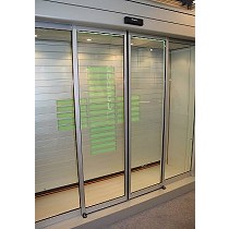 Puerta automática de cristal y persiana enrollable de aluminio Collbaix Serie Duet