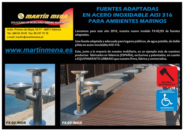 Fuentes para beber agua adaptada fx-02 en acero inoxidable aisi 316 para ambientes marinos